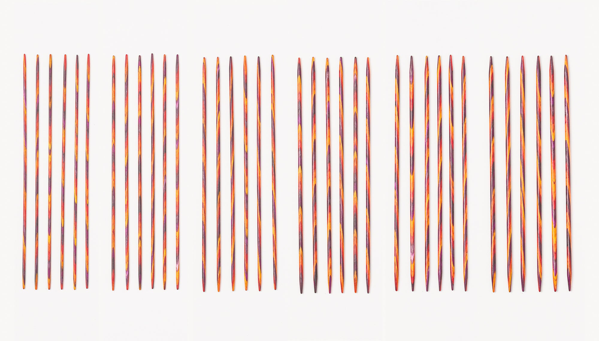 Includes the most common sock knitting sizes, packaged in a portable, flexible, 6" by 6.5" vinyl case with snap shut closure, making it the perfect gift for sock and mitten knitters who favor wood needles. Each size is neatly labeled on the enclosed packaging so you can see the sizes at a quick glance. Watch the metric sizes - they are more finely tuned than the US sizes.