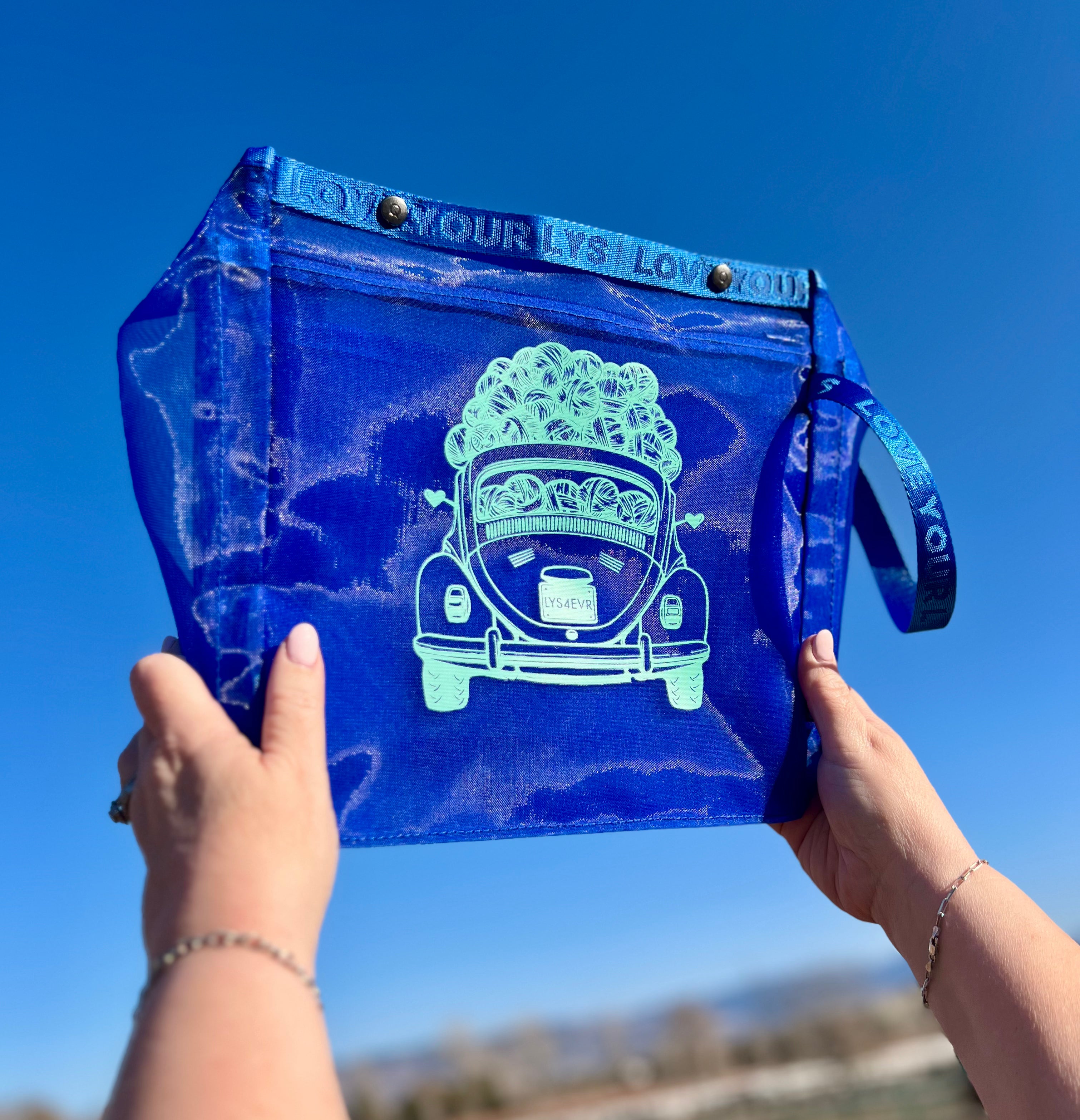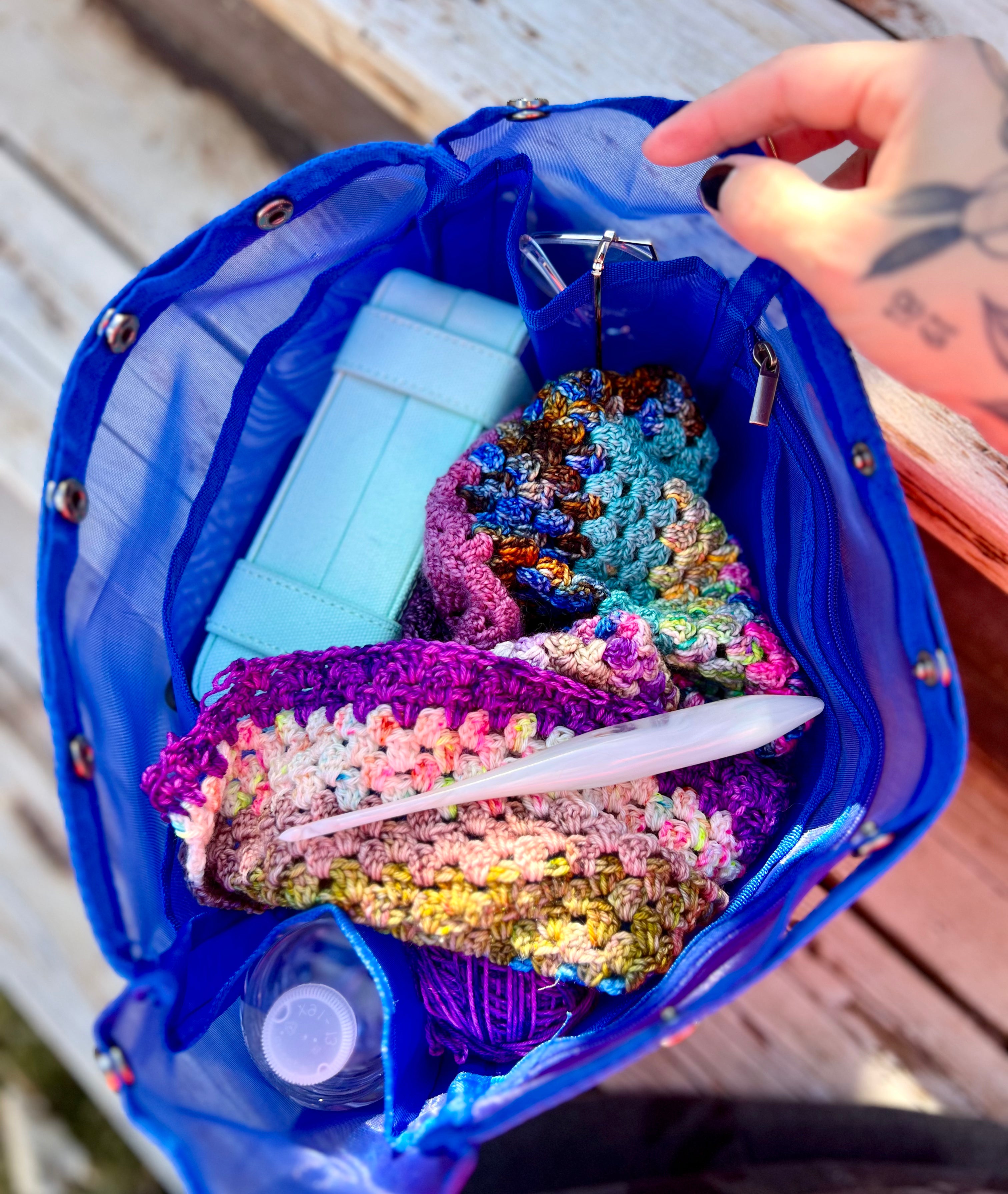 Celebrate your favorite LYS in style with this exclusive, square-large Oh Snap Sack—designed specifically for Local Yarn Store Day! Measuring 11" x 11, this spacious project bag is perfect for holding larger projects, multiple skeins, and your crafting essentials. Made with the same lightweight, see-through mesh as our classic Oh Snap Sacks, this special LIMITED EDITION features a custom woven handle and trim that proudly says "Love your LYS". Stay organized with interior pockets while enjoying the convenience of a grab-and-go wristlet.
