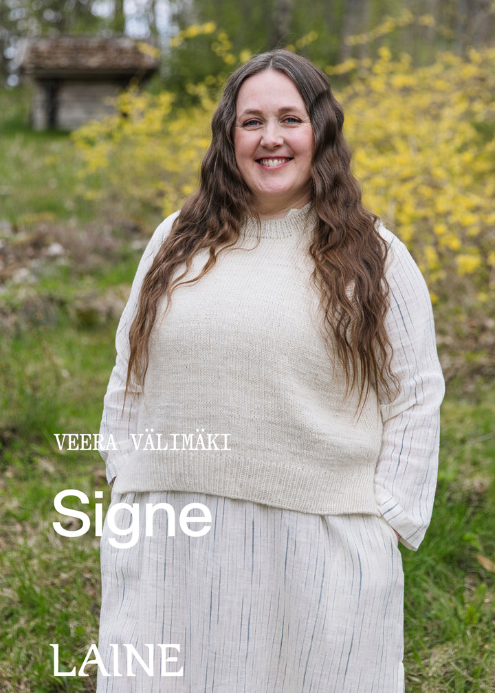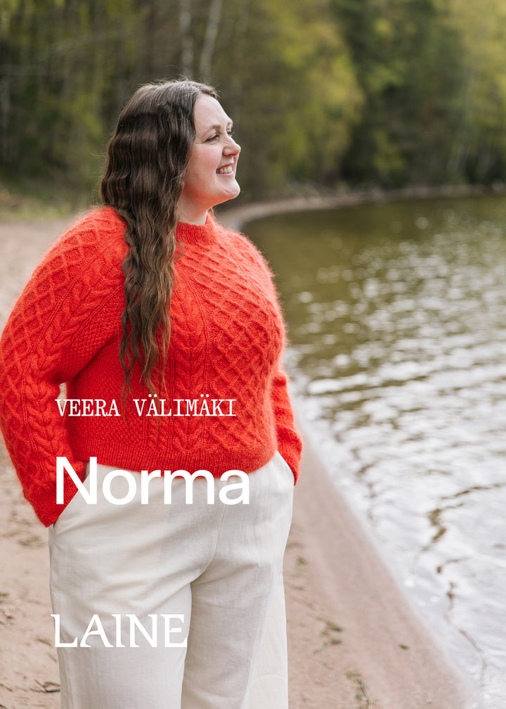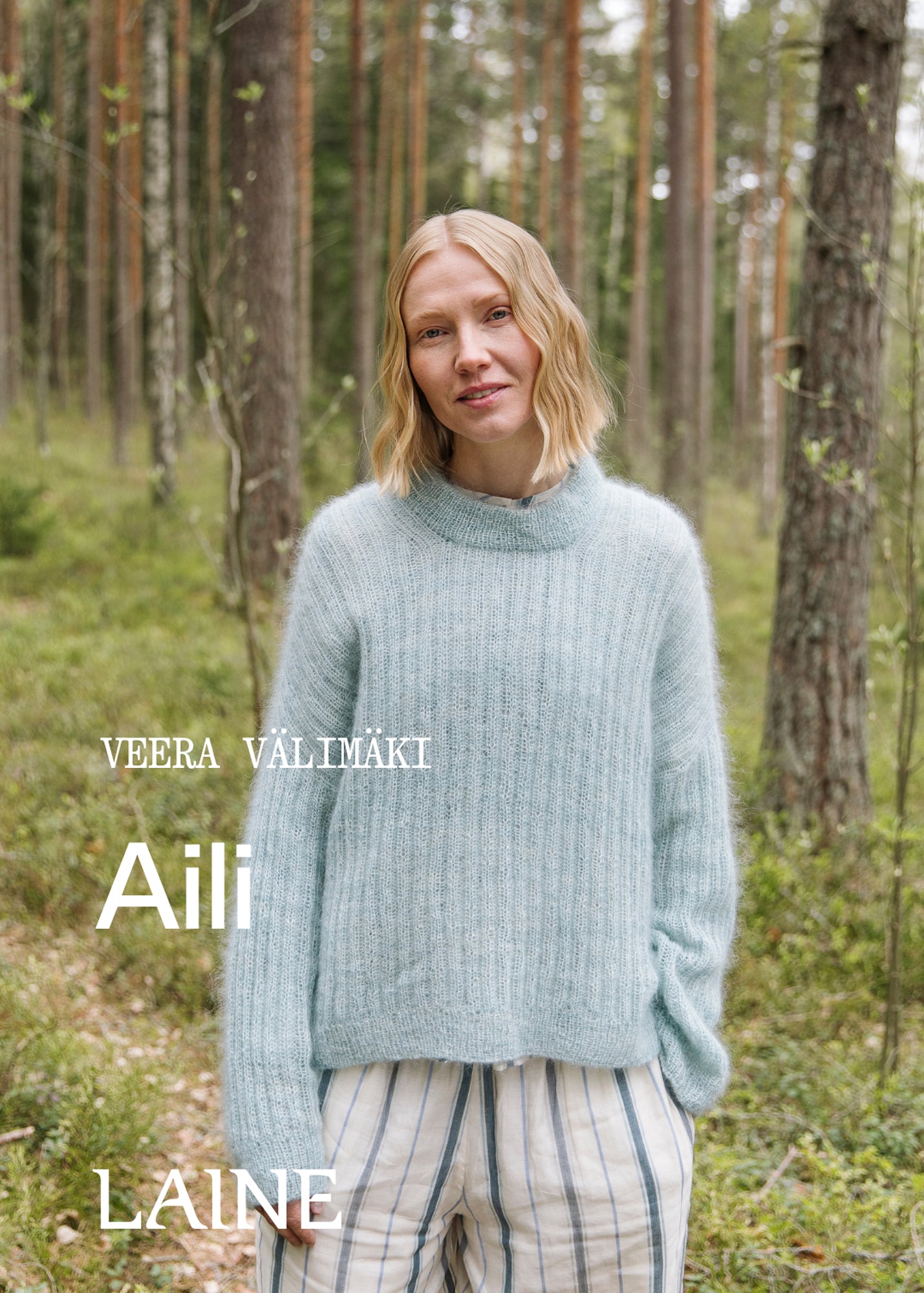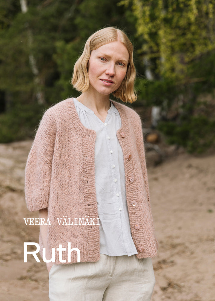 From airy mohair sweaters in pastel hues to relaxed cable cardigans, generous shawls, and cozy beanies, every project embodies her signature blend of modern elegance and everyday comfort. Inspired by the calm beauty of the Finnish countryside, Veera’s work captures the joy of slow, intentional making.
