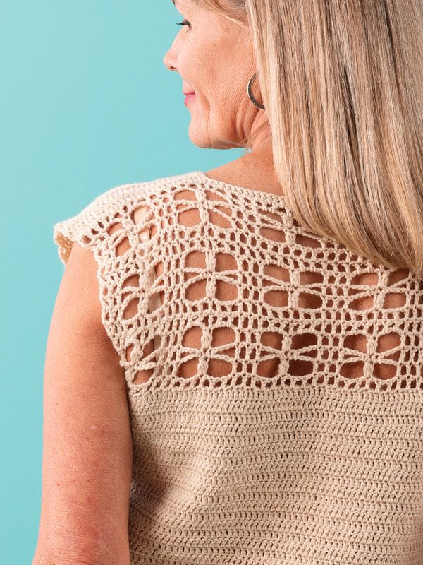 Rosecliff is the crochet top that’s as comfy as it is stunning! With a simple sleeveless silhouette and a jaw-dropping lace panel in the back, this piece is perfect for breezy summer days. Softly structured and effortlessly stylish, Rosecliff will take you from one summer activity to the next without missing a beat.