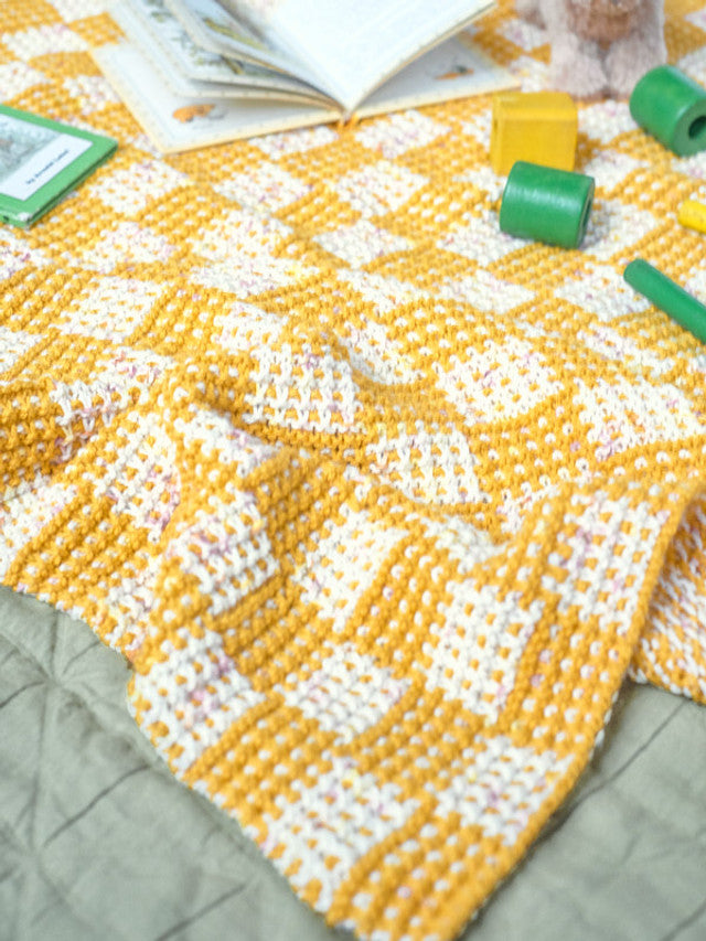 Mateo is the snuggly, two-color mosaic knit blanket that’s equal parts modern and timeless! With an eye-catching checkerboard effect created using simple slipped stitches, this beauty gives you all the wow factor without the fuss. No complicated colorwork here—just easy, satisfying stitches that let your yarn do the talking! Whether you’re making it for a little one, a cozy lap blanket, or a statement throw, Mateo is a fun and stylish project you’ll love from first stitch to last.