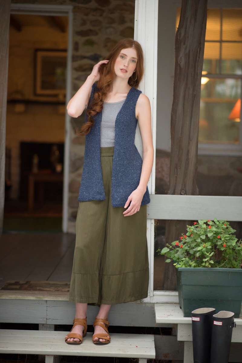Use Berroco Remix to knit up this lovely open-front vest! Work from the bottom up in one piece, finishing the shoulders in a three-needle bind off.The vest is perfect for layering throughout the seasons.