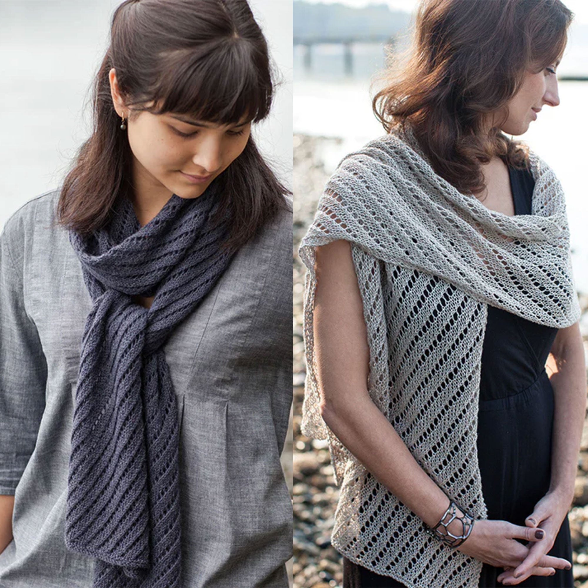 The Diagonal Lace Scarf and Wrap is lovely in a linen yarn as a wrap for cool evenings in sunny places. Or wrap it twice as a lavish scarf. Whichever way you go, it's the perfect accessory for the 'shoulder' season.