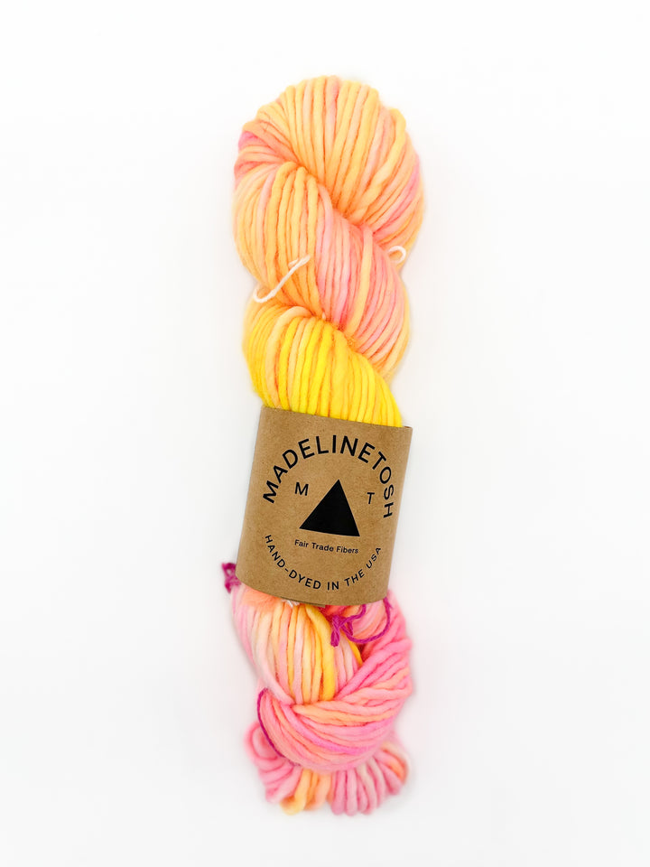 Please Note: Dyed by hand in small batches, Madelinetosh yarns do not come in dye lots. We do our best to visually match hanks for each order and will contact you via email if one or more hanks differ noticeably from the others. The beauty of hand-dyed yarns is that each hank is a unique work of art, so please be aware that there can be a variation in coloring, hue, and saturation, even within the same dye batch.