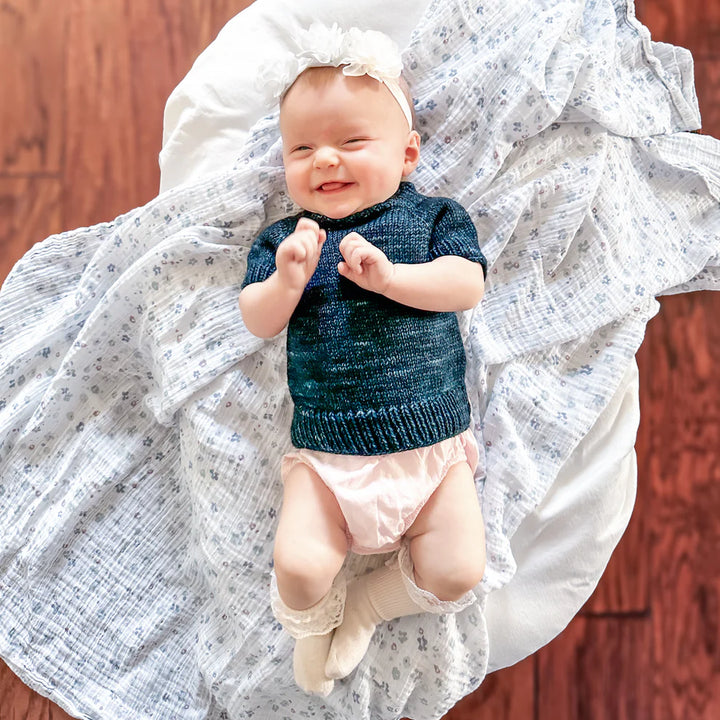 This perfect pullover is a go-to for baby showers! Knit in Madelinetosh Tosh DK, this adorable sweater is worked seamlessly in the round. With options for both short and long sleeves, Baby Raglan keeps little ones comfortable and stylish.