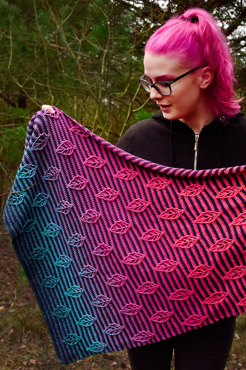 Taken from: Christina Hadderingh's Ravelry page - "Glowing Leaf" - A love letter to the spring season! This beautiful shawl was inspired by the leaves finally returning to the trees and colors arriving to the flowers that pepper the ground. This shawl has an overall leaf motif that has certainly caught our eye as well as our hooks! Perfect fir the adventurous beginner and beyond, this shawl is sure to give you something to... spring for!