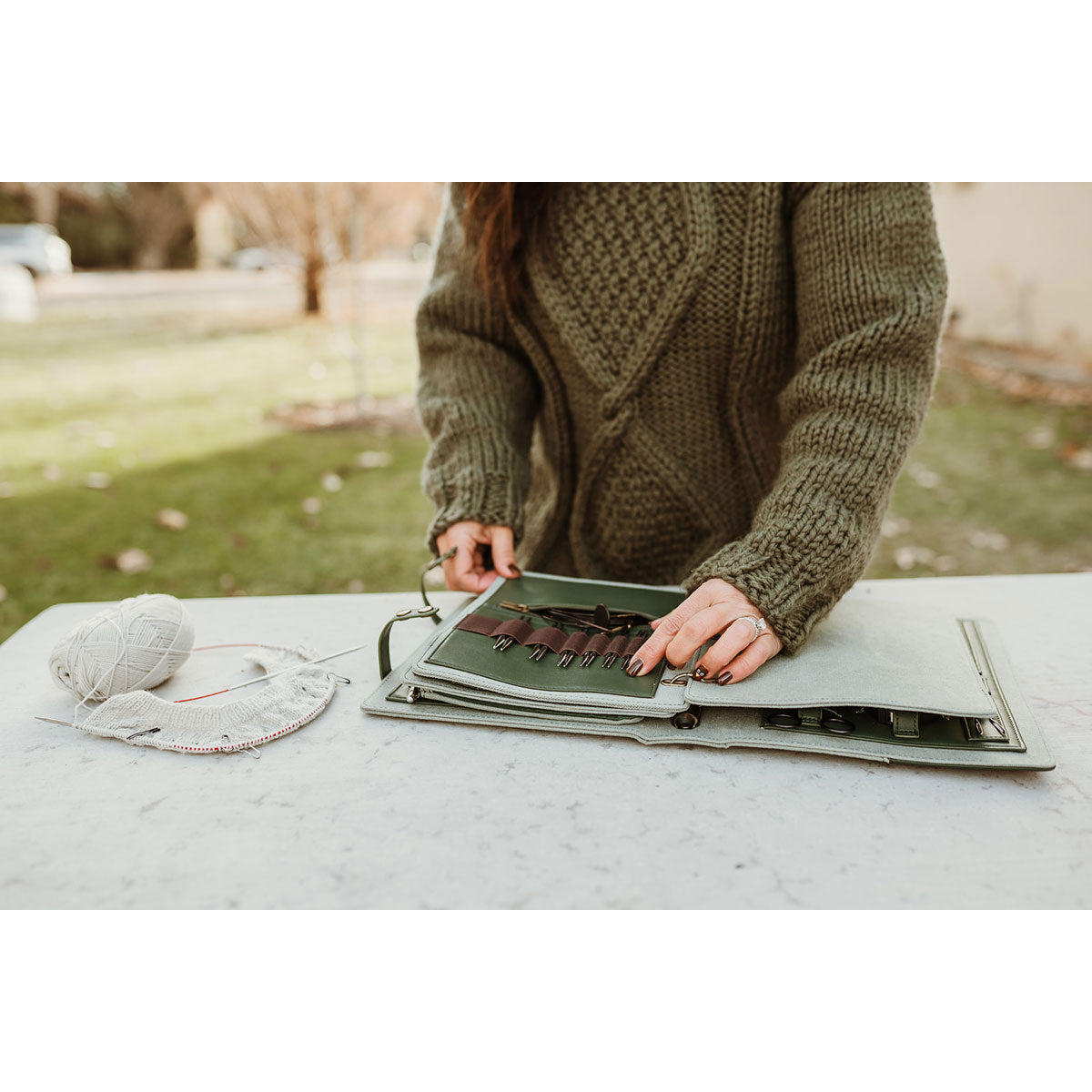 Meet the della Q Hook & Needle Notebook, your all-in-one craft storage solution! Crafters often switch between knitting and crochet projects, and this stylish notebook keeps your crochet hooks, knitting needles, notions, patterns, and more organized. It comes with four essential pages for your tools, including a built-in zippered pouch. Plus, you'll find darning needles, a tape measure, and scissors all included. Color-coordinated and designed to match della Q's Everyday Collection, it's the perfect crafting companion for ALL makers!