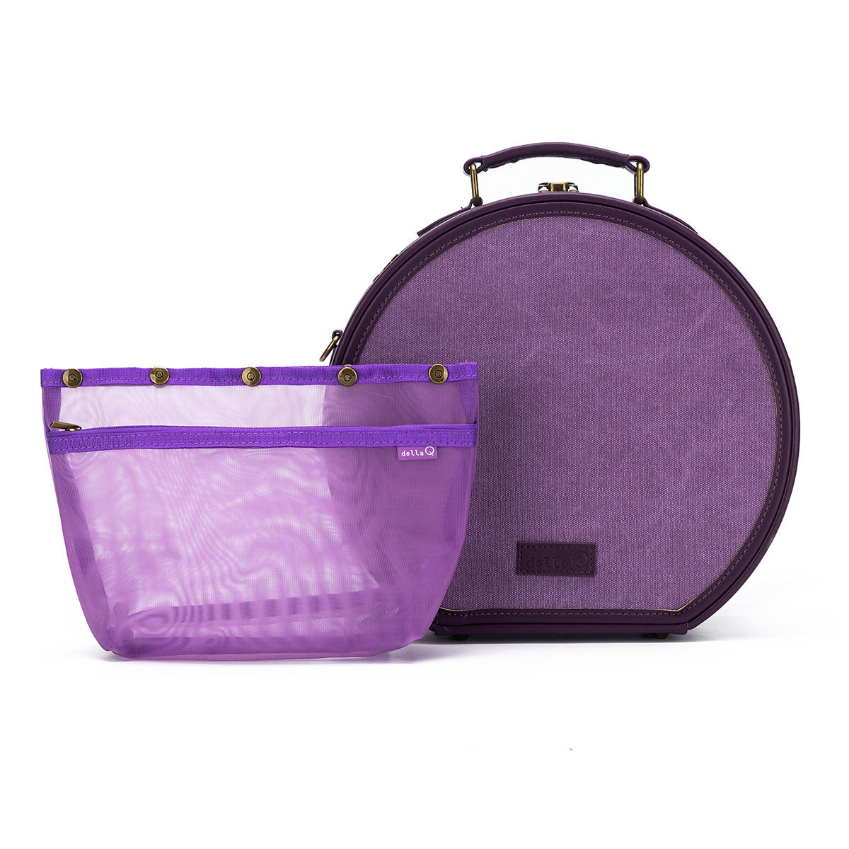 A project bag has never looked so chic! Introducing the della Q Maker's Hat Box, the ultimate companion for craft enthusiasts. This versatile and stylish case comes equipped with a hard shell exterior, a matching Oh Snap bag, and two exterior yarn feeders, making it the perfect on-the-go storage solution for all your knitting and crochet essentials!
