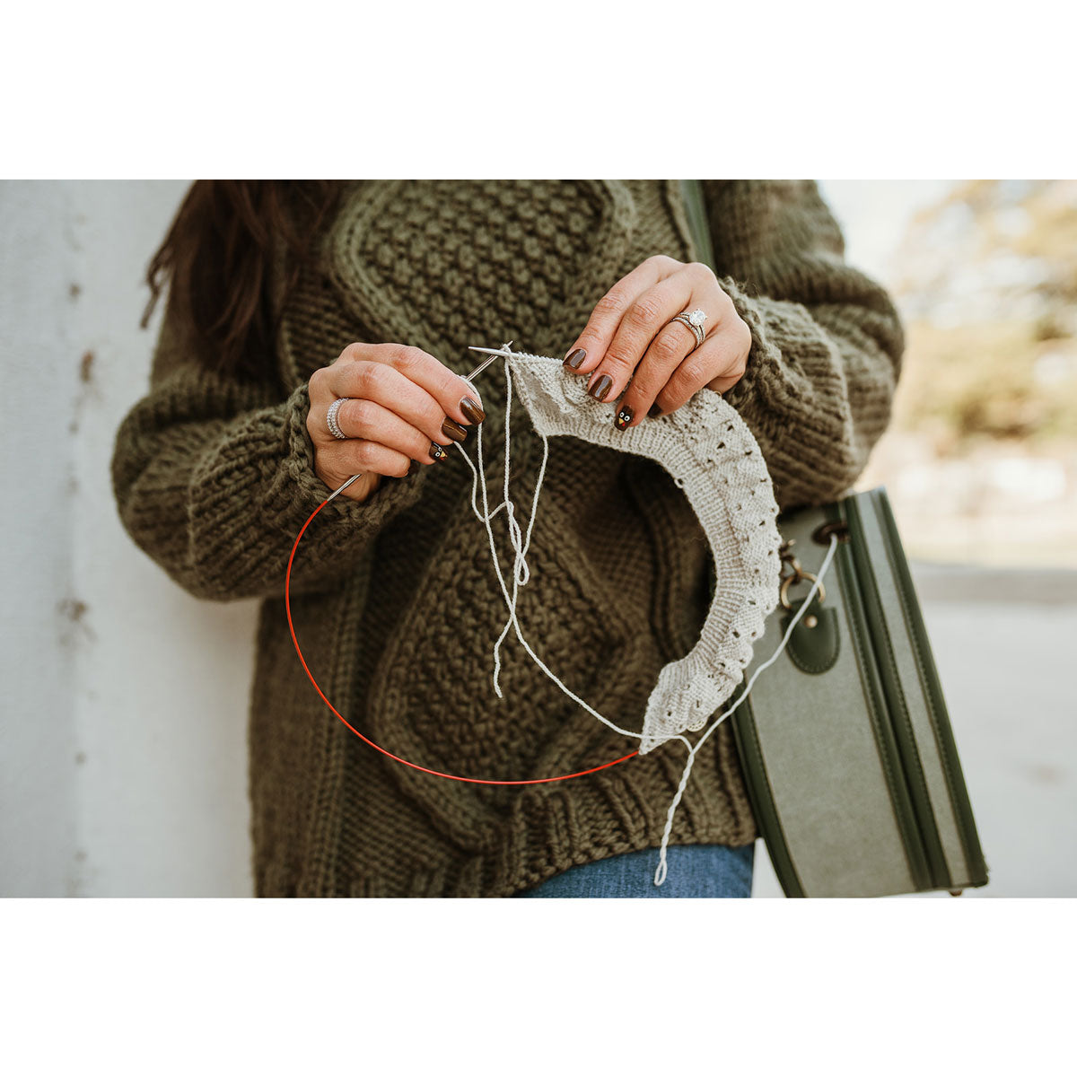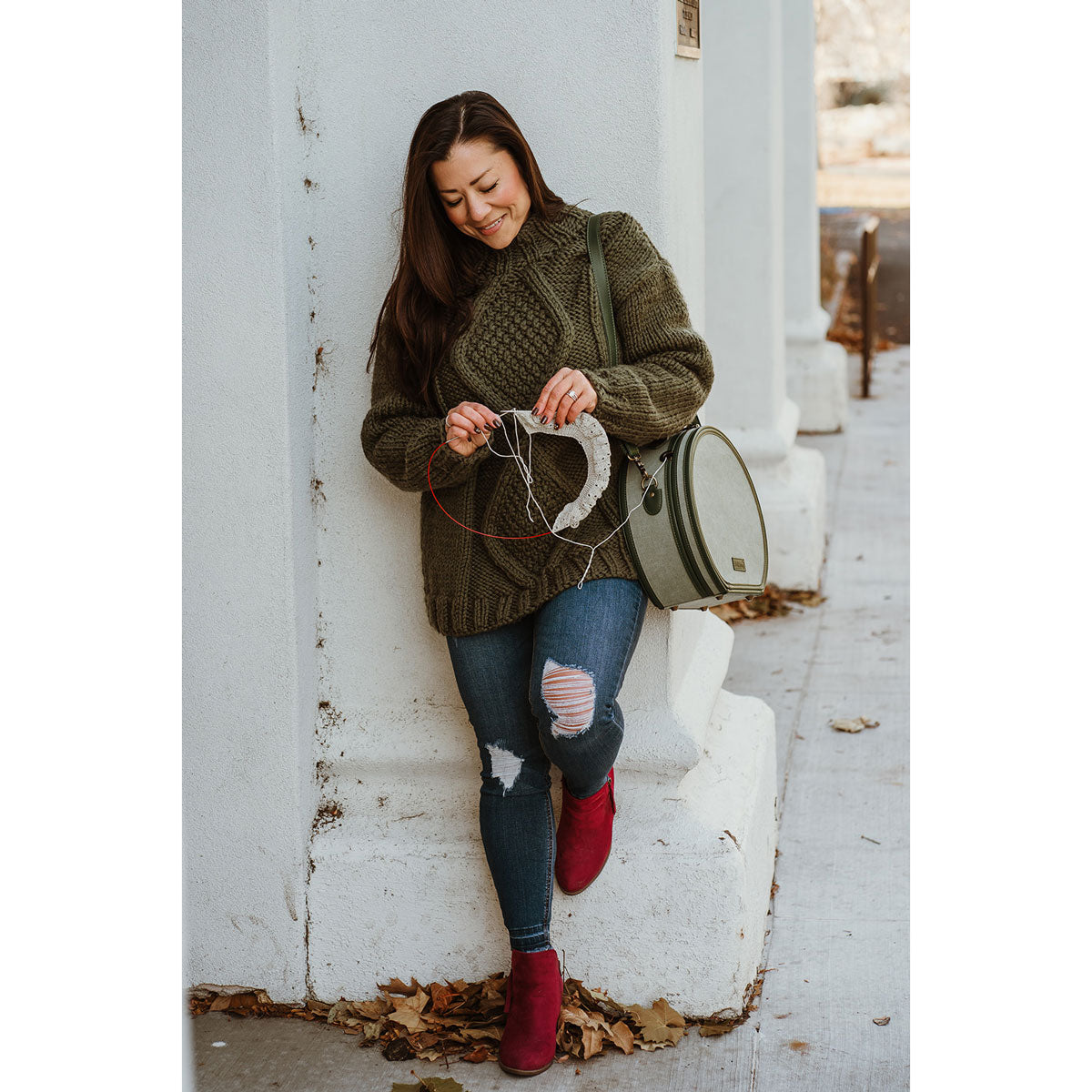 Thoughtfully designed with nine pockets to neatly organize your needles or crochet hooks, you'll also find an integrated tape measure, scissors, and darning needles in matching pockets securely attached to the top lid. Take your projects with you in style!