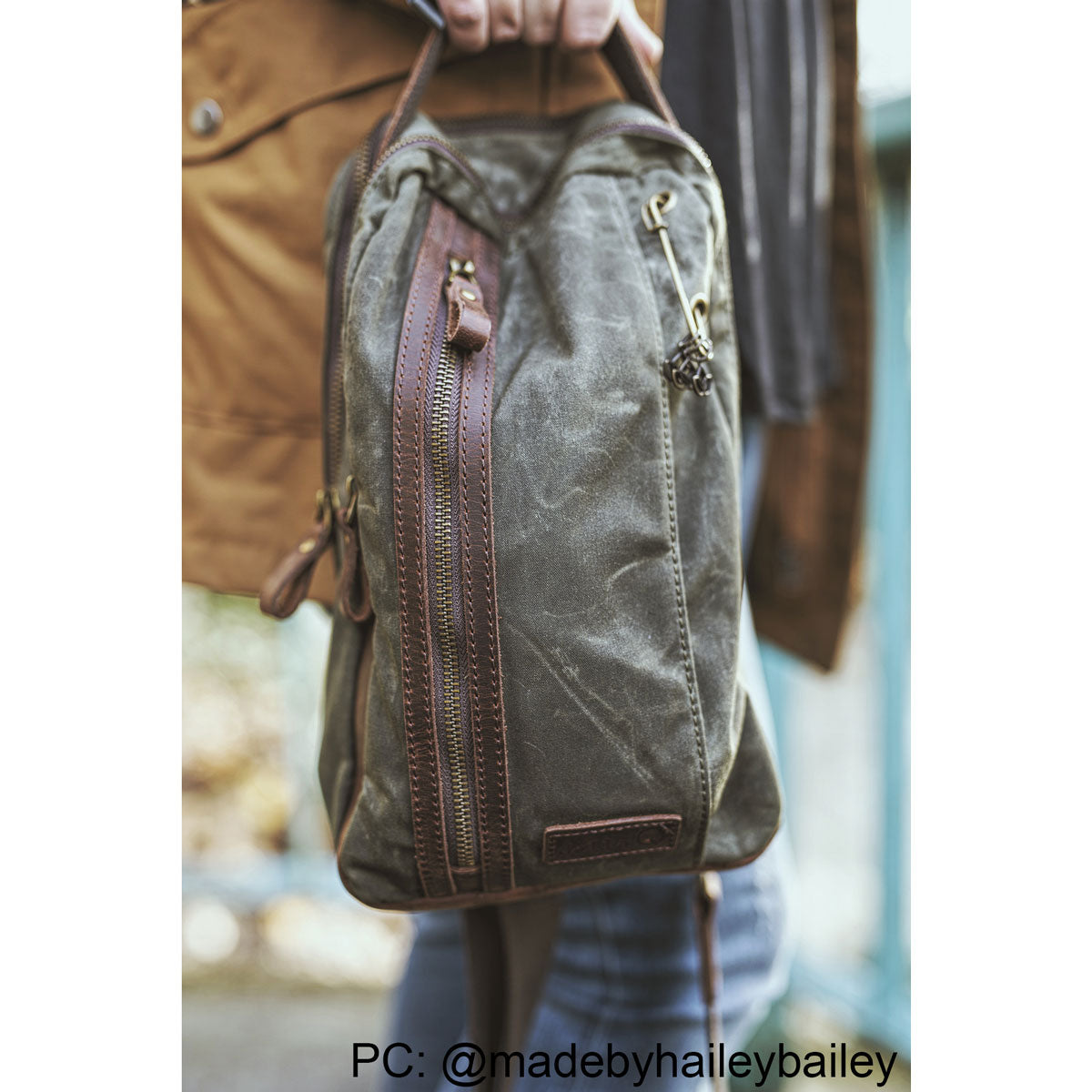 Waxed Cotton Canvas and Full Grain Leather Trim
