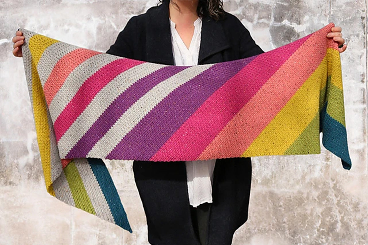 Available in a huge range of 60 colourways, out Terrazzo yarn makes a wonderful sustainable choice for colourwork techniques such as Fair Isle knitting and Brioche crochet. It also works well in combination with our Alpaca Rhythm and Mohair Rhythm yarns, offering crafters options for experimenting with texture.