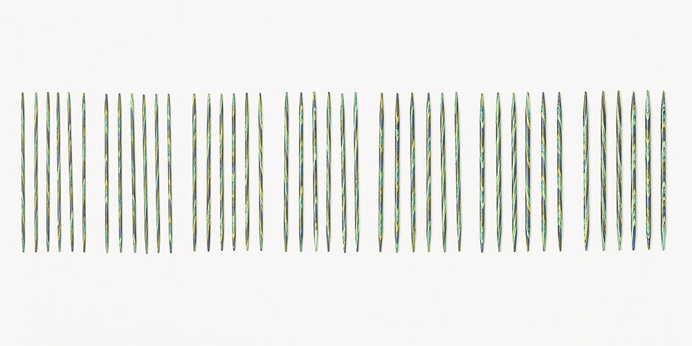 Included are the seven most common sock knitting sizes, packaged in a portable, flexible, 5.75" by 9" vinyl case with snap shut closure, making it the perfect gift for sock knitters who favors wood needles. Each size is neatly labeled on the enclosed packaging so you can see the sizes at a quick glance. Watch the metric sizes - they are more finely tuned than the US sizes.