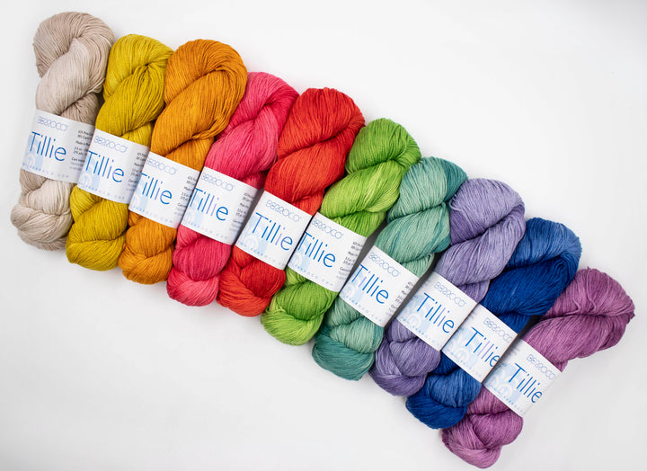 New to us from Berroco is Tillie!! This is a luxurious hand-dyed yarn made of pima cotton and cupro, a sustainable silk-like fiber made from cotton waste. Tillie's chainette construction creates a light yarn with generous yardage, along with amazing softness and structure. Made in Peru, this cotton blend has a gorgeous drape, smooth feel, and long-lasting durability. Plus it's machine washable!