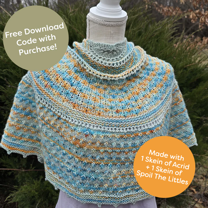 Inspired by The Secret Garden, this half-pi shawl from Jenny Noto tells a story from seeds to bold blossoms. Garden Shawl Kit includes a free download code with purchase and velvety Dream in Color Smooshy Cashmere in soft, dreamy Spoil the Littles and the latest Pop-Up color Acrid, a bold blend of electric turquoise and fiery orange. The use of simple stitches create a visually stunning motif in two contrasting colors, with just one color used at a time. A picot edging adds decorative charm like the points of a fence.