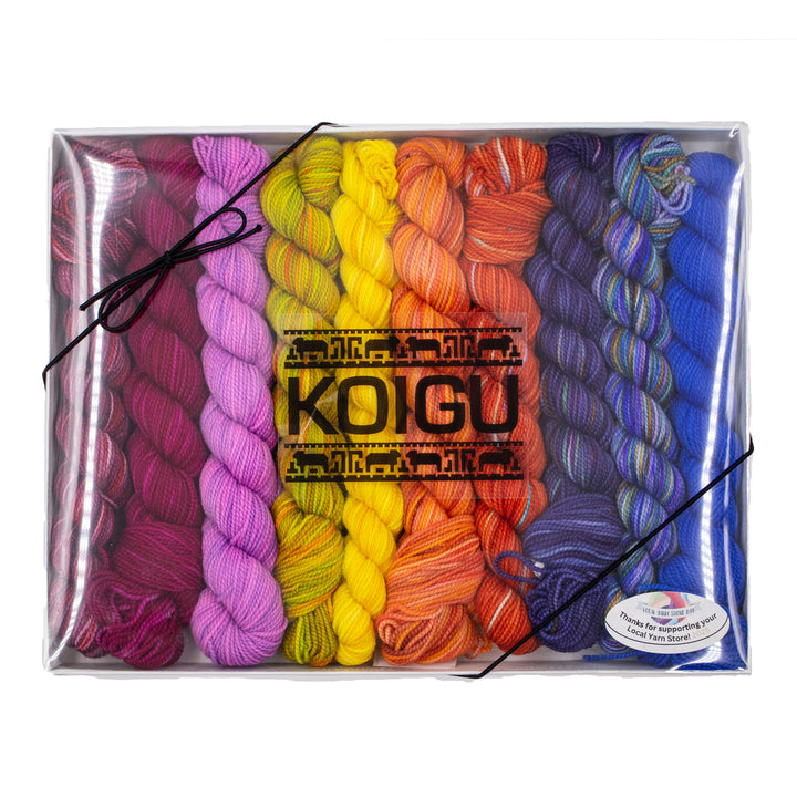 Who doesn't love mini skeins of yarn?! Especially the hand-painted beauties from Koigu! These beautifully curated Pencil Boxes contain 10 demi KPPPM skeins (25g each), carrying approximately 820 yards per kit! Koigu KPPPM is a 100% Merino wool fingering-weight yarn available in a plethora of gorgeous, hand-painted colorways.