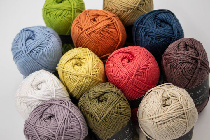 100% cotton with a beautiful soft, matte finish. This yarn knits to a standard DK tension on a US 5 needle. It comes in a stunning selection of colours from soft pastels through to jewel like brights.