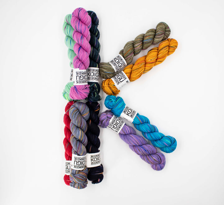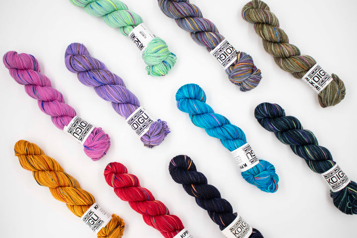 There are literally hundreds of beautiful hand painted colorways, and to help you navigate their extensive palette, Koigu has a color numbering system to assist you in finding exactly what you're looking for. **PLEASE NOTE THAT THIS SYSTEM IS A GENERAL RULE AND SOME COLORS DO NOT FIT WITHIN THIS SYSTEM**