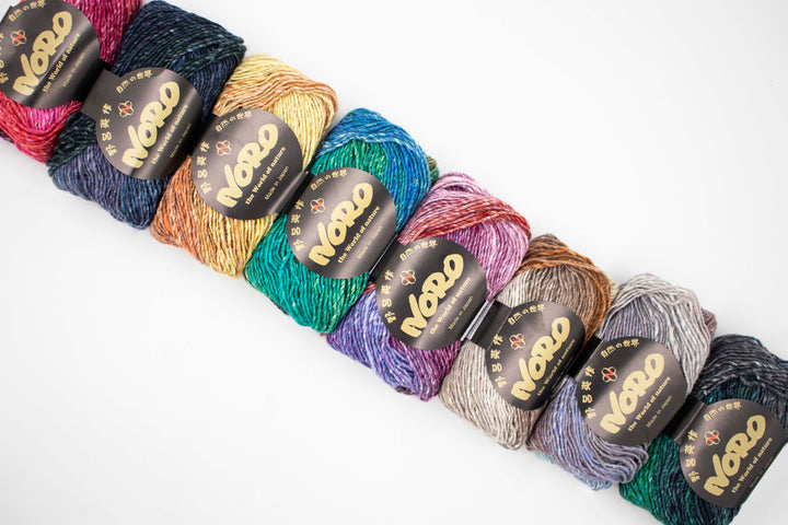 Noro Silk Garden is a hand-dyed blend of silk, mohair, and wool with incredible self-striping colors!! Eisaku Noro's artistry in blending colors and fibers remains unsurpassed. Wearing a garment created with Noro yarn is like wearing a work of art. Use this aran-weight yarn to make beautiful hat, scarves, sweaters, and more!