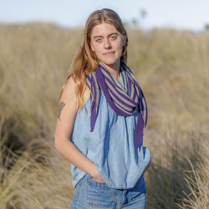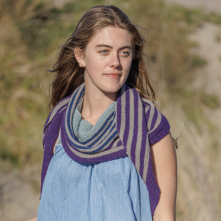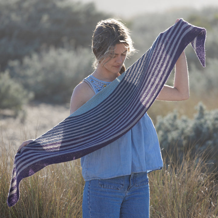 The Delphinium Shawl is one of those pieces you just can’t wait to wrap around your shoulders! With four gorgeous shades of Yarn Citizen Harmony Fingering, this striped beauty is all about adding a playful pop of color to your look. The luxurious softness of the yarn makes it a joy to wear, while the vibrant design effortlessly elevates any outfit. Whether you’re layering it over a cozy sweater for extra warmth or wearing it as a statement piece, this shawl will quickly become your new favorite go-to for style and comfort.