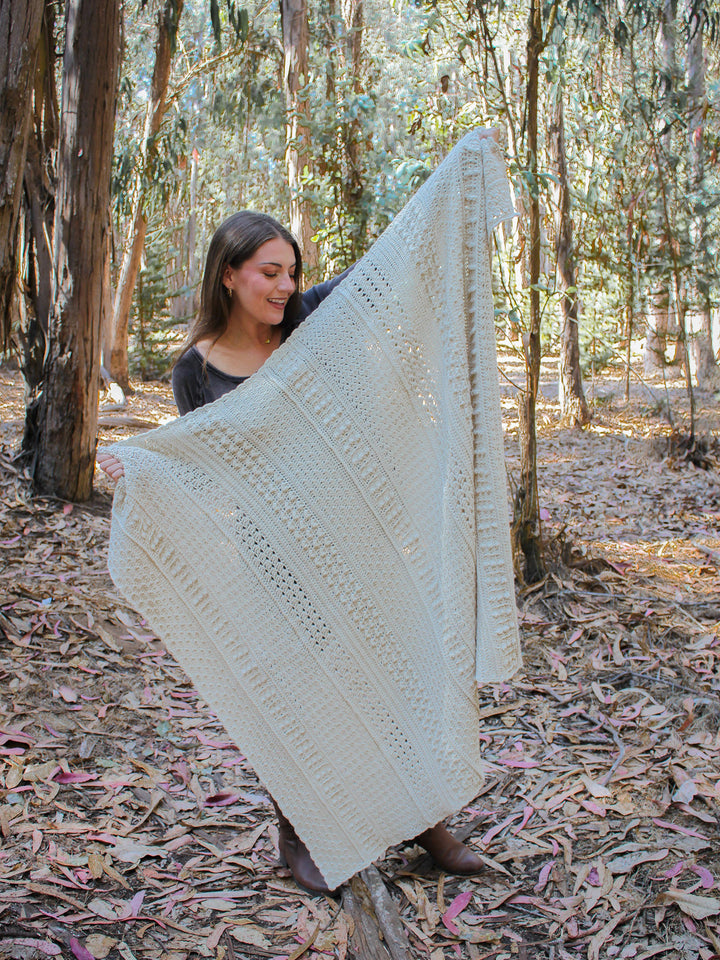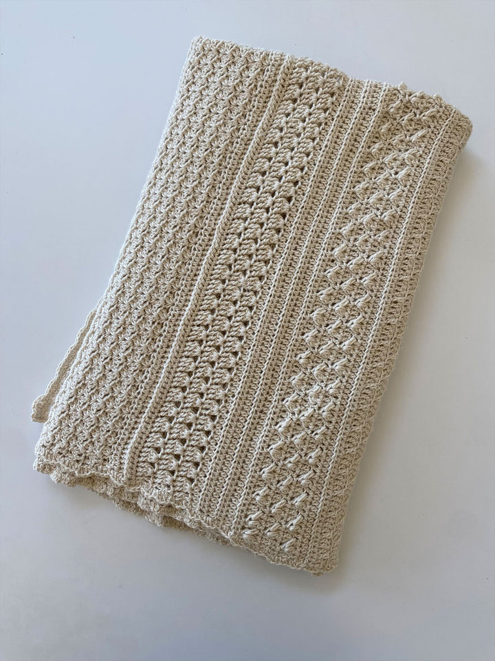 The Cobblestone Blanket features a variety of stitch patterns to give this blanket wonderful texture. Yarn Citizen Unity Worsted has fantastic stitch definition to make the crochet stitches pop!