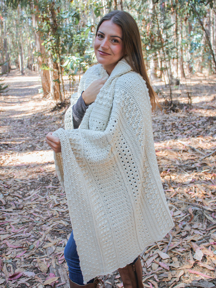 - Shown in Yarn Citizen Unity Worsted in the color Natural. 12 skeins required.