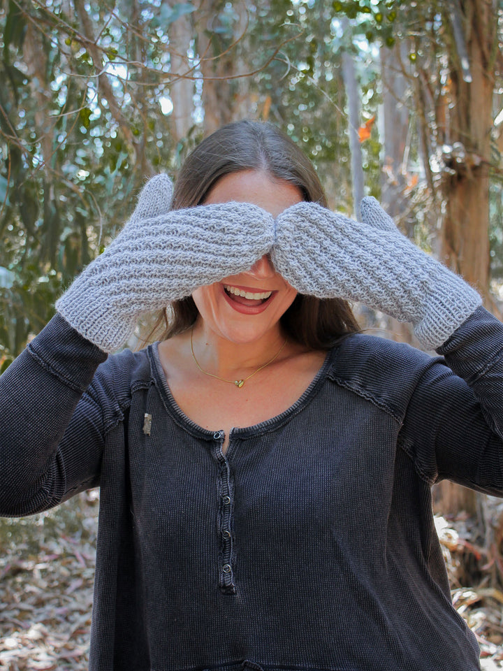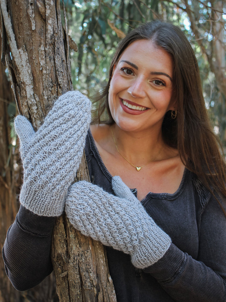 Keep your hands warm and toasty this winter with the Meander Mittens. Featuring a lovely spiral texture pattern, these mittens are sized for the whole family.