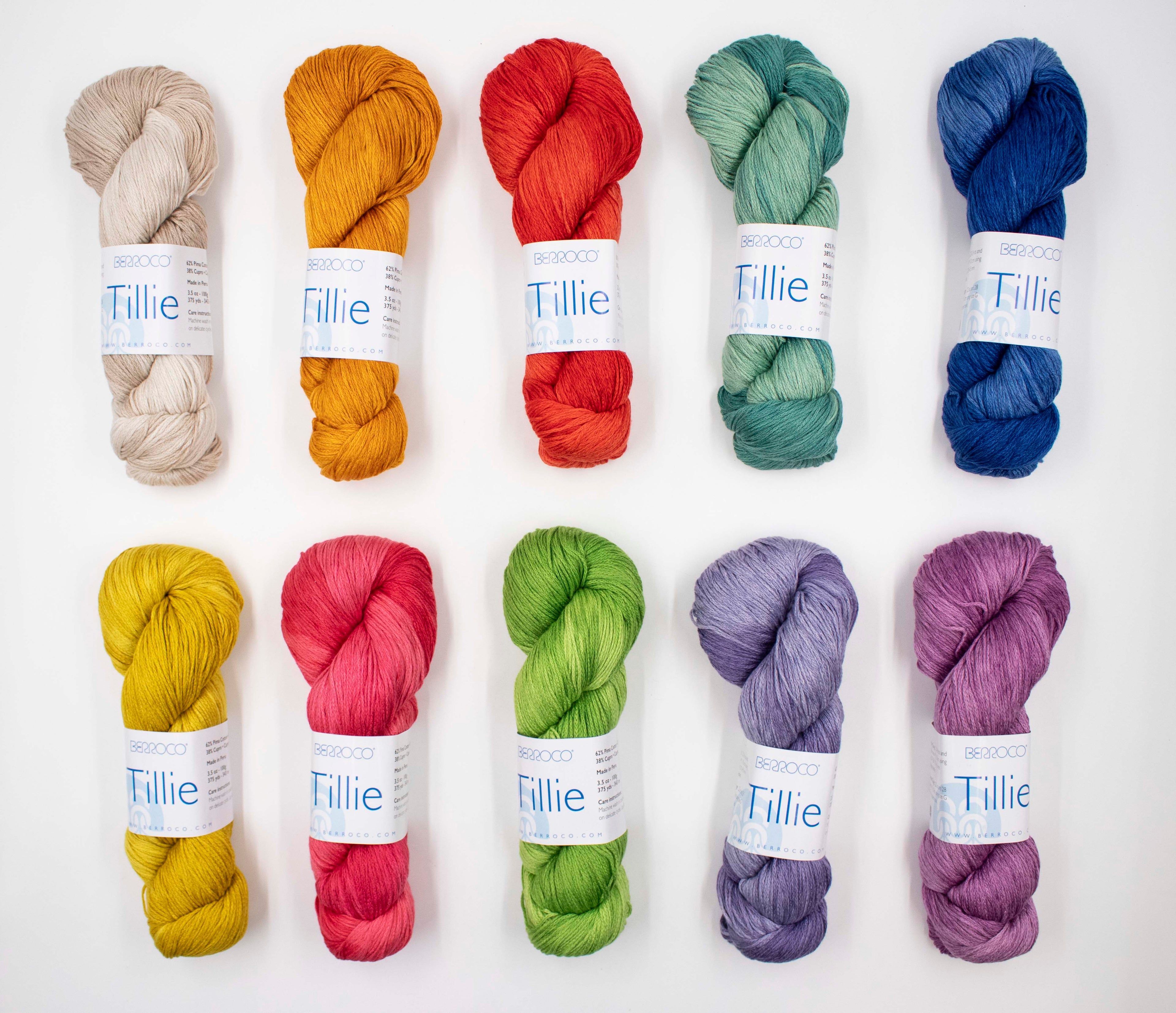 New to us from Berroco is Tillie!! This is a luxurious hand-dyed yarn made of pima cotton and cupro, a sustainable silk-like fiber made from cotton waste. Tillie's chainette construction creates a light yarn with generous yardage, along with amazing softness and structure. Made in Peru, this cotton blend has a gorgeous drape, smooth feel, and long-lasting durability. Plus it's machine washable!