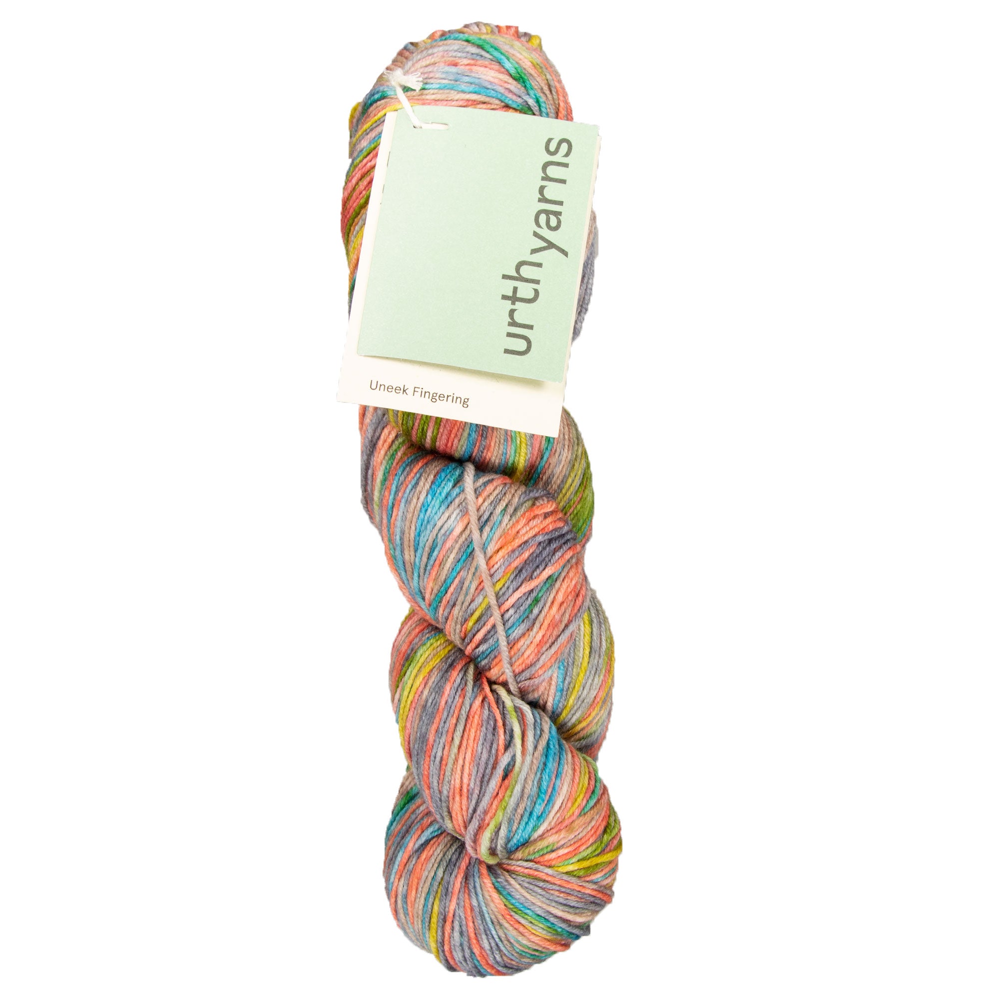 Available in rich vibrant colorways, each skein of Urth Yarns Uneek Fingering yarn is crafted from 100% Extrafine Merino wool. These stunning hand-dyed to perfection shades bring fun to any project they're used in! Sweaters, shawls, socks, and more will be elevated to a new level, making use of the unique striping effect that this yarn is capable of.