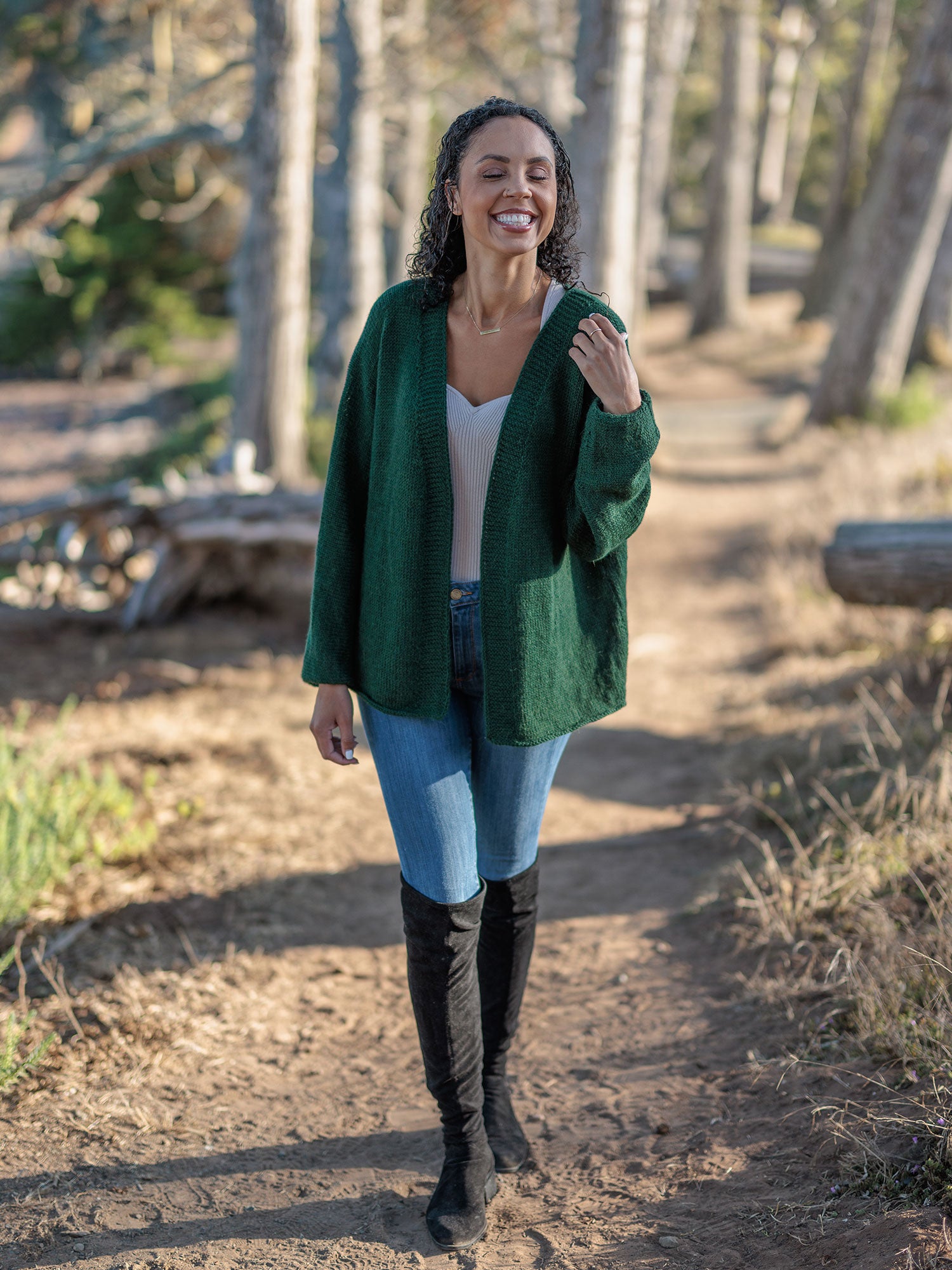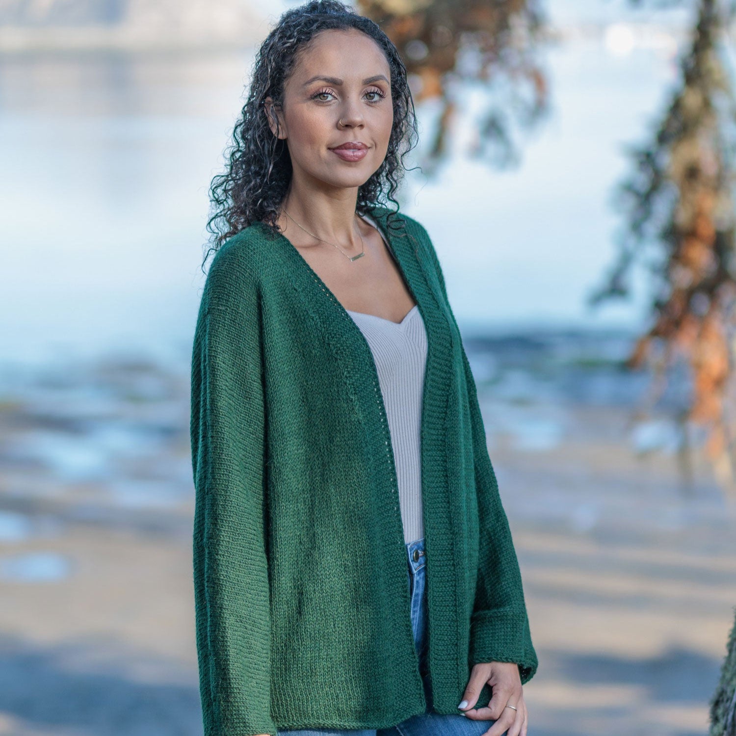 This open-front sweater is anything but basic! Knit in Yarn Citizen Unity Worsted, Essence Cardi will be a staple in your wardrobe.