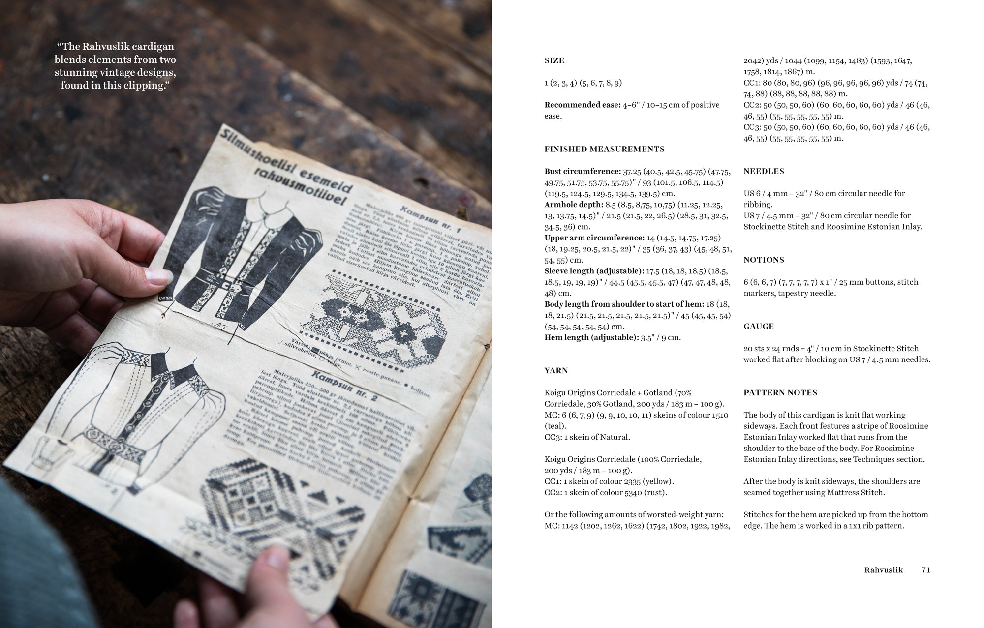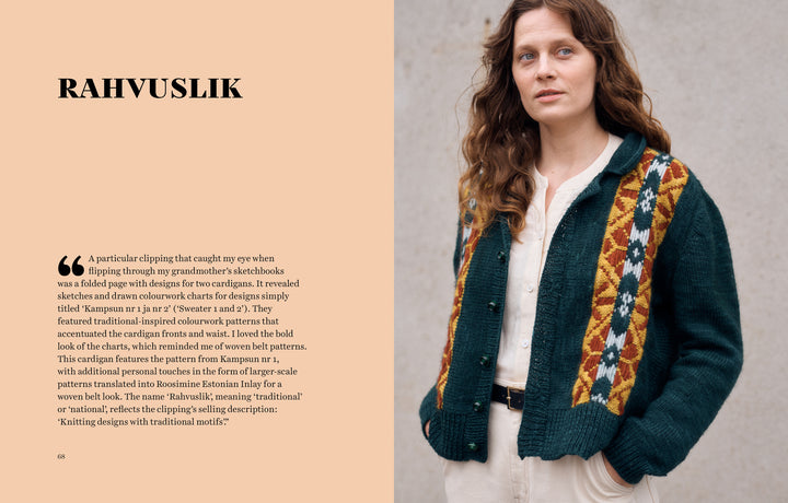 Inside, you’ll find socks, hats, sweaters, and cardigans brought to life through lace, cables, and colorwork plus Roosimine, the traditional Estonian inlay technique Aleks has helped introduce to knitters around the world. Every design feels both timeless and fresh, balancing old-world craftsmanship with a contemporary maker’s eye.