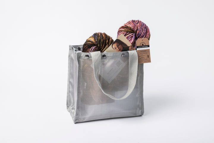 - A sleek della Q + Madelinetosh Collab Go Tote in shimmering Silver