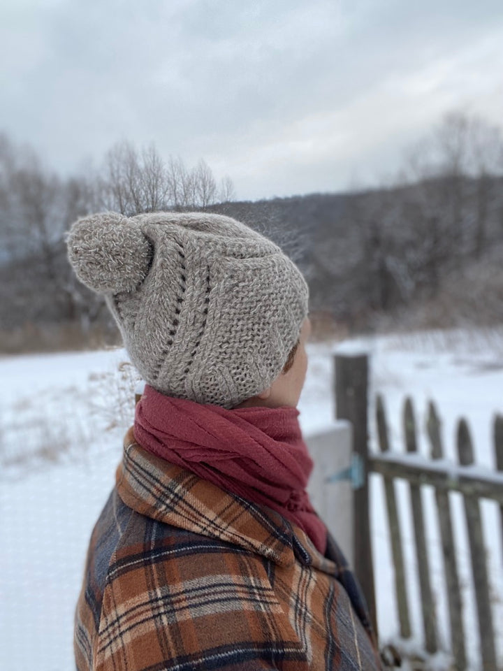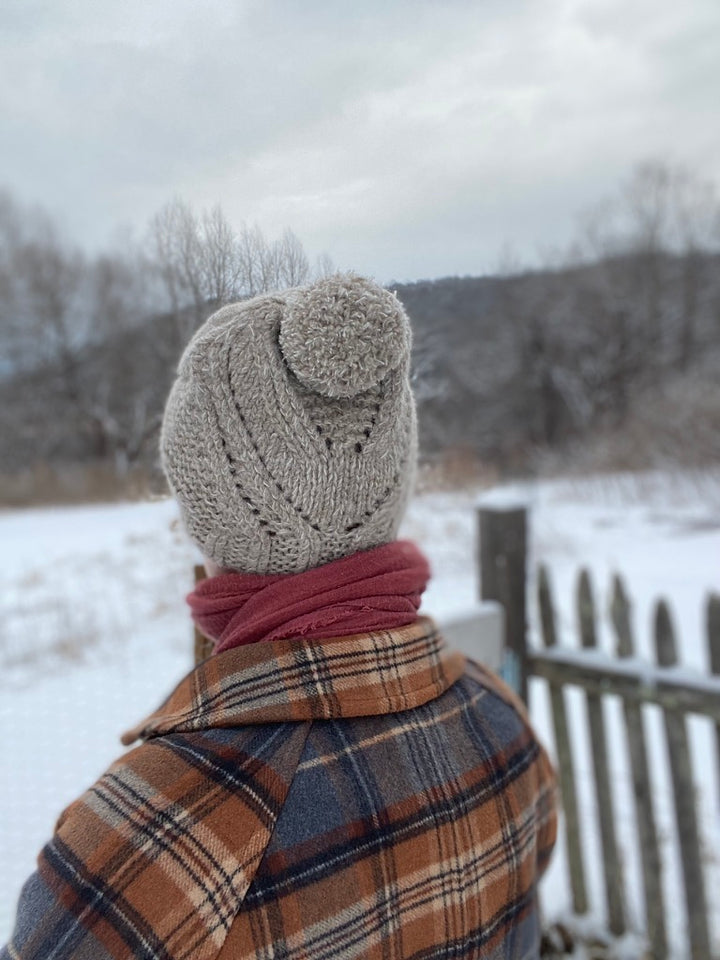 Gudrun Johnston first designed the Fidra Hat in 2015 while living in Edinburgh, Scotland. At the time, she nearly didn’t publish it—she wasn’t quite happy with the crown shaping. But after a few tweaks, she sent it out into the world and is so glad she did. Over the years, it has become one of her most popular patterns, finding its way onto needles season after season. Recently, she decided it was time to knit another for her own accessory drawer. This time, she paired Jamieson’s of Shetland Heather Aran with Yarn Citizen Trinity Cashmere, creating a beautifully textured, ultra-soft fabric—just the thing to keep the frigid New England temperatures at bay.