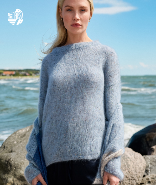 This fabulous project is both easy and eye-catching! With the clever use of German short rows, a stunning curved hemline comes to life, adding a unique touch. Made with the luxurious Lana Grossa Natural Superkid Tweed, every stitch promises to be a treat. Enjoy crafting something truly special!