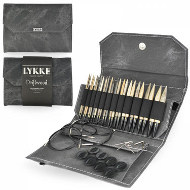 LYKKE Crafts Birchwood Interchangeable Needle Sets - Driftwood - Grey Case - 3.5" Tips US 3-10.5