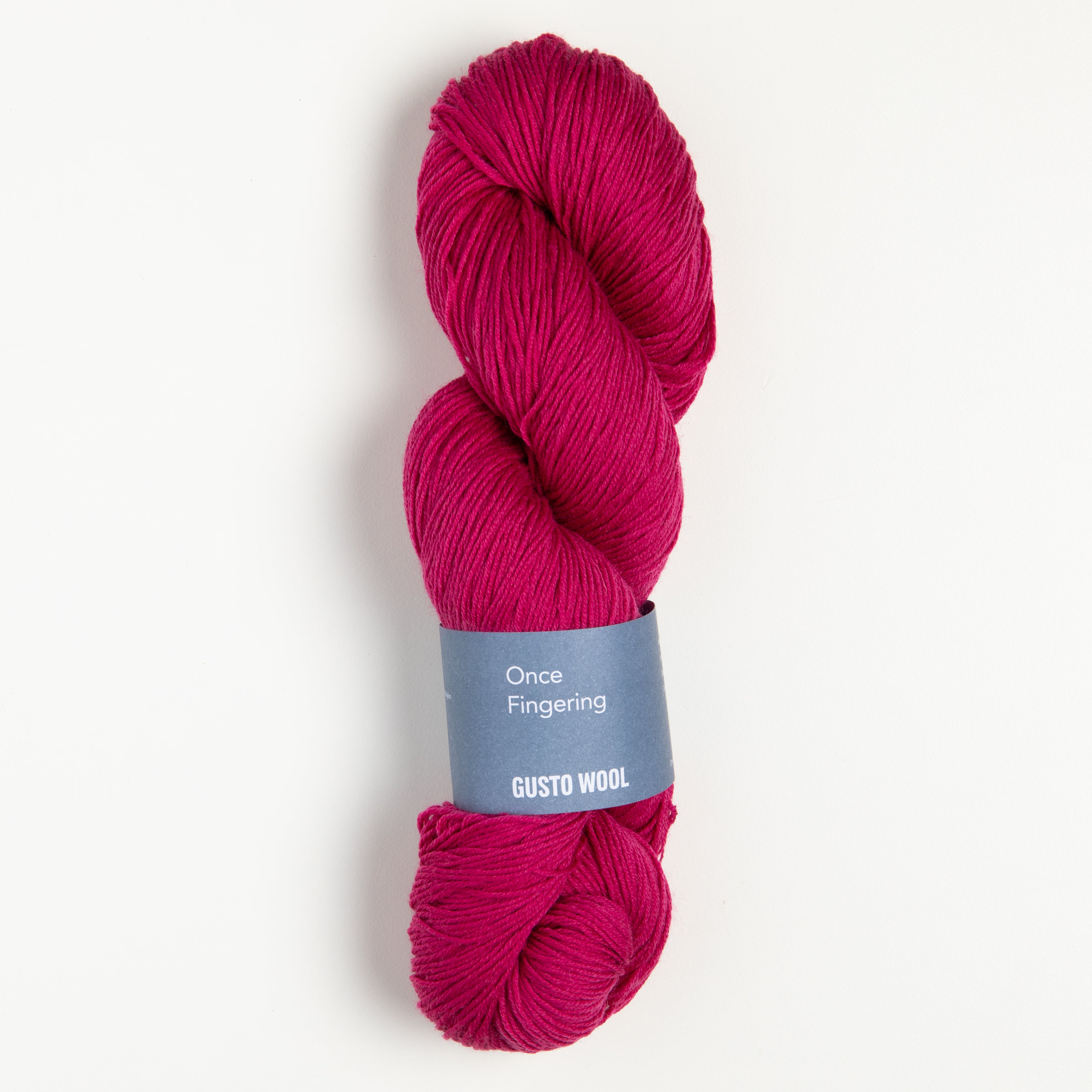 Gusto Wool Once is a fingering weight blend of extrafine superwash Merino wool and nylon. The smooth texture and excellent stitch definition lend itself to lacy shawls, lightweight cabled sweaters, colorwork socks, and so much more.
