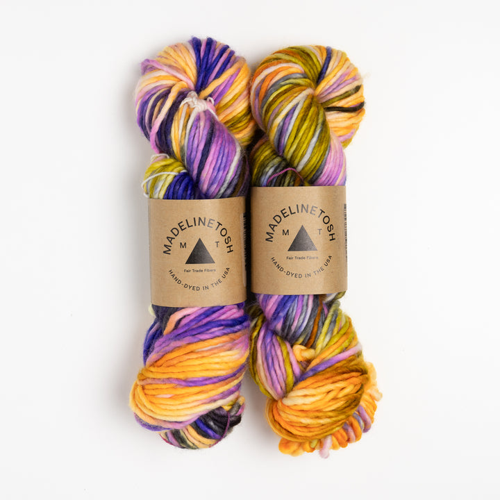 Please Note: Dyed by hand in small batches, Madelinetosh yarns do not come in dye lots. We do our best to visually match hanks for each order and will contact you via email if one or more hanks differ noticeably from the others. The beauty of hand-dyed yarns is that each hank is a unique work of art, so please be aware that there can be a variation in coloring, hue, and saturation, even within the same dye batch.