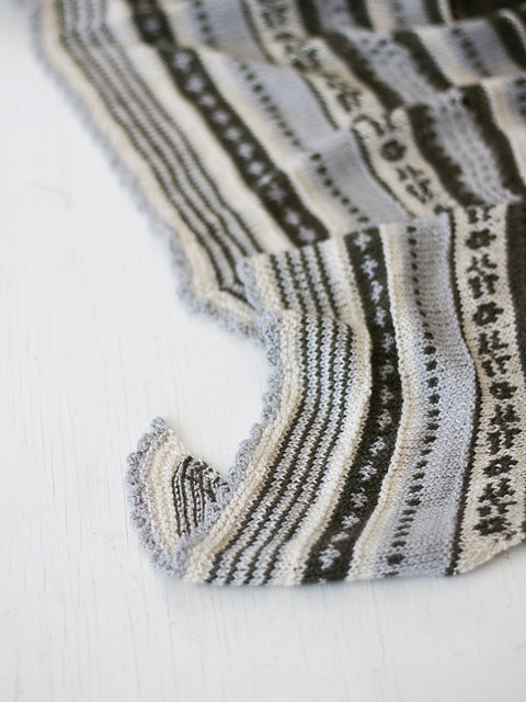 The Madelinetosh Pathways shawl is worked on a looser gauge than recommended for the yarn, to create a soft and drapey fabric.