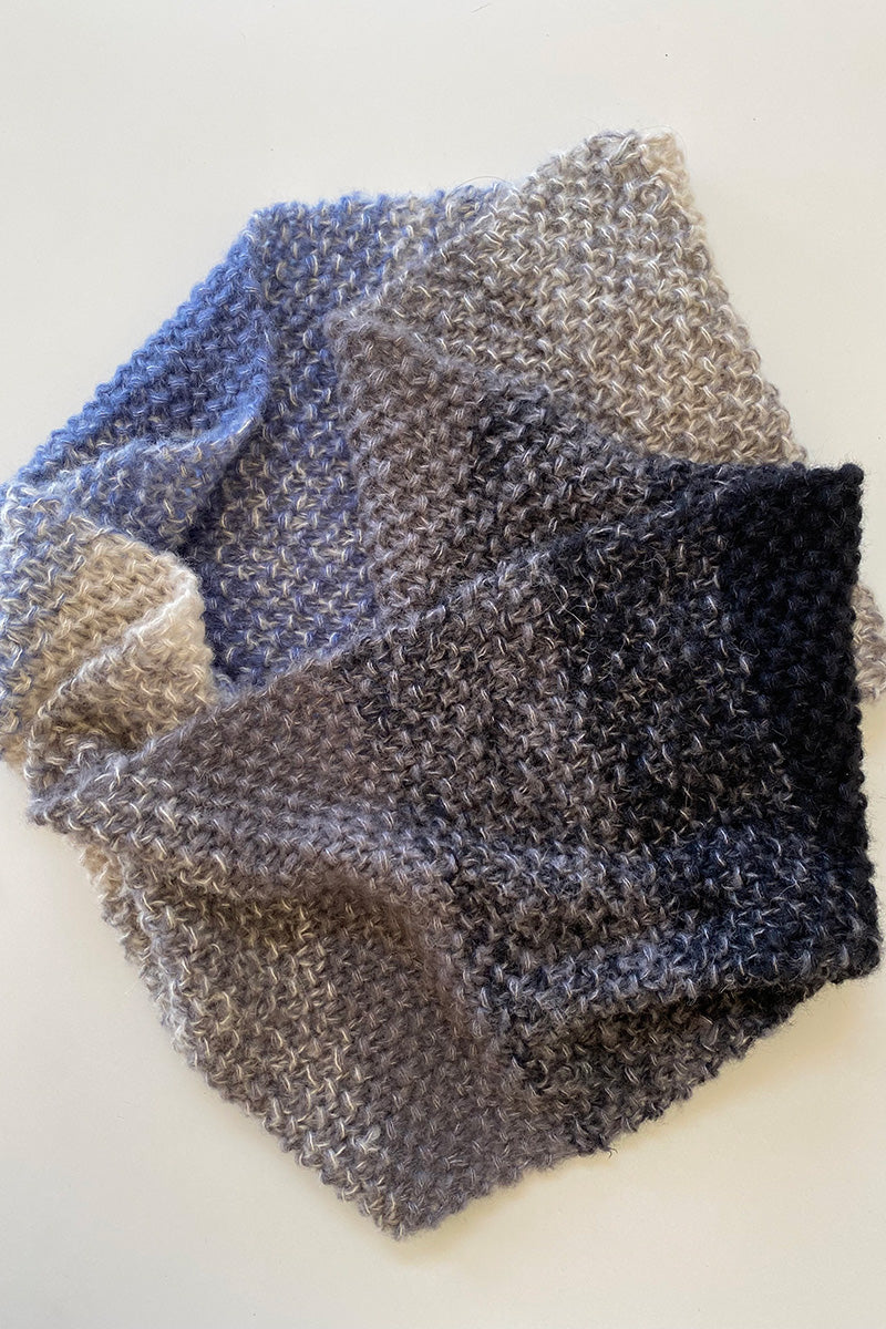 • Shown in Yarn Citizen Trinity Cashmere in the colors Almond, Ocean, Coal, and Raven. 1 ball of each yarn required.