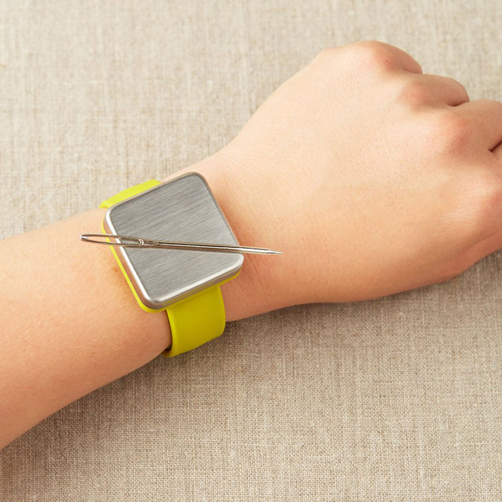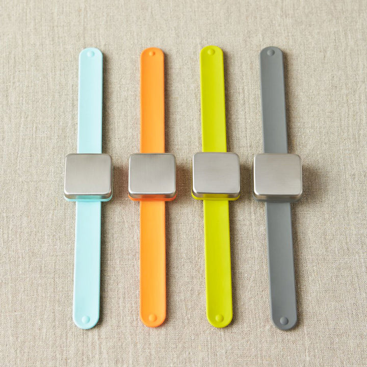 With cocoknits Maker's Keep, your metal tools and notions won't get away from you! This stylish slap bracelet fits everyone and features an adjustable magnet. It also measures lines in inches and centimeters along the underside of the strap. Use Maker's Keep to keep your tools together, or you can even push the magnet to one end and use the strap as a straight edge! You can wear it on your wrist or drop it in your bag to keep all of your notions in a safe place! This Maker's Keep bracelet pairs perfectly with Maker's Keep Accessories. Maker's Keep is also versatile! Use this bracelet for household items such as paper clips, hairpins, nails, and screws to keep your small metal necessities close to you whenever you need them!