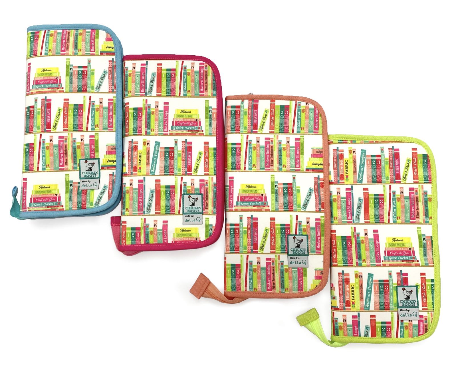 Thanks to our friends at della Q, Chicken Boots is back! The reimagined DPN/Crochet Hook Case is a zippered carrier exclusively for double point needles and crochet hooks with a built in notions case on the outside! With two rows of eight pockets in varying widths, the case can accomdate multiple sizes and amounts of needles and hooks. A see-through flap prevents any needles and hooks from sliding out of the case while a built-in zippered notions case on the outside back is roomy and comes with a small interior pocket for small items.