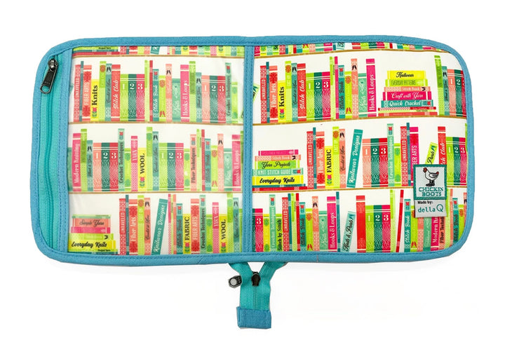 Thanks to our friends at della Q, Chicken Boots is back! Each needle pocket row is elasticized, offering 12 pockets in various widths, along with three extra pockets that can be used for additional storage, though they're not specifically designed for needles. The extra pockets are located one on each end under the zipper tape and one in the center-along the fold of the case. Needle Pockets measure 1/2 to 1 in width but stretch and will hold US 15 needles in the largest pockets. Cord flaps have 4 pockets each and also hold needles inside case. There is a large built-in Notions Case on the outside of the case as well! It has small interior pocket for tapestry or cable needles or something similar.