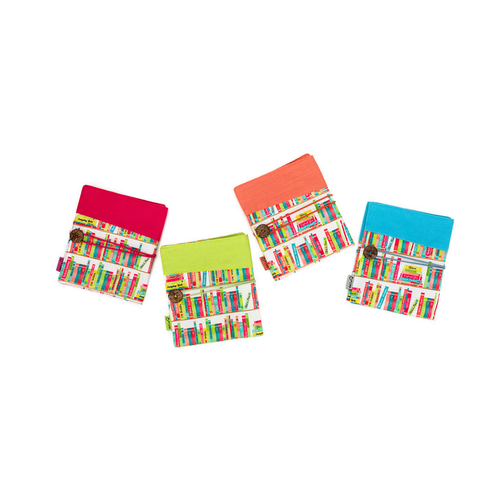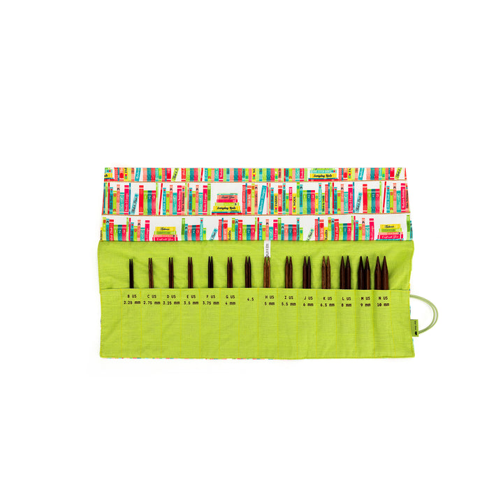 The della Q Crochet Roll is the ultimate crochet roll you'll want to own whether you are an avid crocheter or a knitter who has accumulated your grandmother's crochet hooks! The pockets are wide enough to hold hooks like the Addi Swing Hook. Please note, the della Q labels rely on the Craft Yarn Council sizing and include Fourteen lettered/numbered pockets (Sizes US B-N 2.5-10mm), plus two non-lettered/unnumbered pockets.