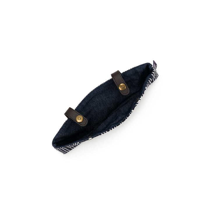 Linen Collection - Lovely linen fabric on the outside, paired with contrasting denim stripes on the inside. We've updated the original design with faux leather straps and snap closures.