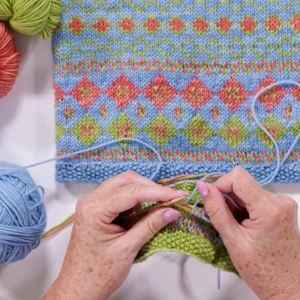 Knit in the round using stranded colorwork with three shades of Dream in Color's Smooshy fingering weight yarn.