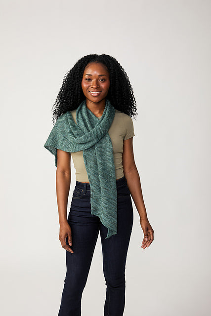 Be swept away by Crete. The fluid drape of this bias-knit scarf is a graceful accent to any outfit, making it the kind of scarf you'll reach for all season long. Crete is knit with 1 strand of Tosh Lunar and 1 strand of Tosh Silk Cloud held together.