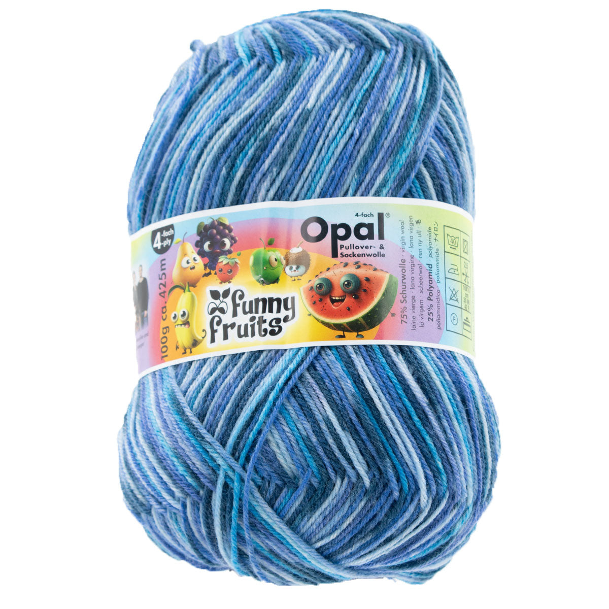 Step into a world of fruity fun with Opal Funny Fruits yarn! This durable 4-ply yarn is crafted from 75% superwash virgin wool and 25% polyamide, ensuring your creations stand the test of time. With 8 vibrant colorways inspired by your favorite fruits, the possibilities are endless! Whether you're knitting socks with funky color patterns or crafting jumpers, hats, gloves, or scarves, Opal Funny Fruits has got you covered. And here's the cherry on top: With just one ball of this delightful yarn, you can whip up a whole pair of socks, fitting up to a size 10.5! So why wait? Dive into a fruity knitting adventure today with Opal Funny Fruits yarn!