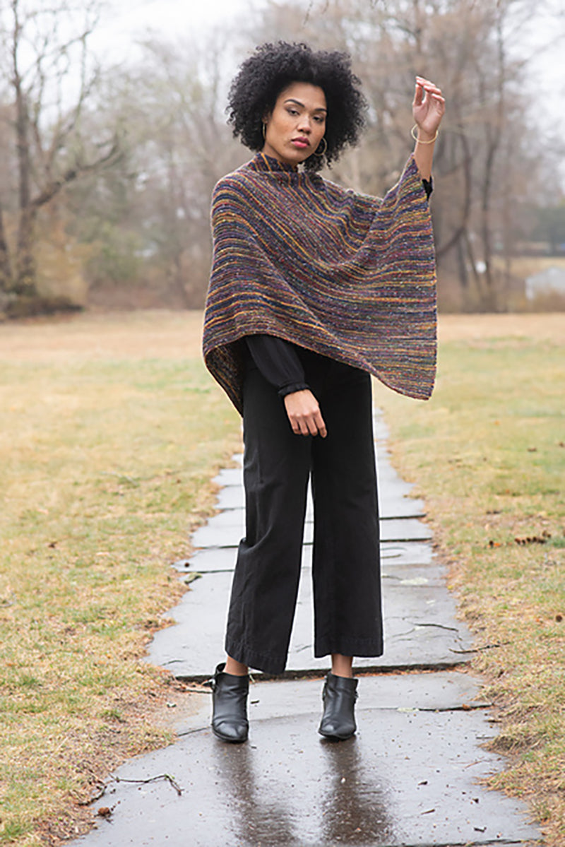 Marlow is the versatile poncho that you NEED in your life now! Worked entirely in garter stitch, this makes a super beginner project for those looking to move beyond smaller items. It's also a great choice for more advanced knitters needing a mindless project or something to travel with. Self-shading Sesame is so pretty in this piece!