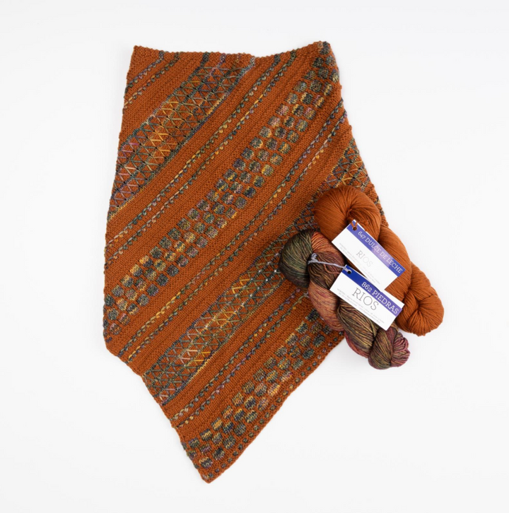 Ayesha wanted something rhythmic and meditative this year, and honestly, watching her work on the Killer Queen Cowl was such a treat. The combo she picked, Malabrigo Rios in Dulce de Leche and Piedras, is just unreal. That rich coppery Dulce de Leche base with those watercolor splashes from Piedras… it’s one of those projects where I kept thinking, “yep, this is why we all love Rios.”