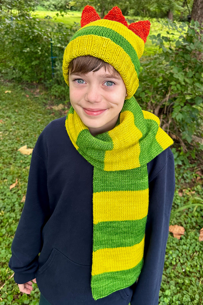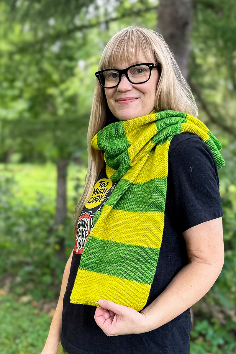 Part of the Madelinetosh Yo Gabba Gabba color collection, this playful palette is inspired by Brobee, the lovable green little monster. Featuring fun, whimsical stripes and Brobee-inspired hues, this colorway will bring a burst of vibrant energy to your knitting!