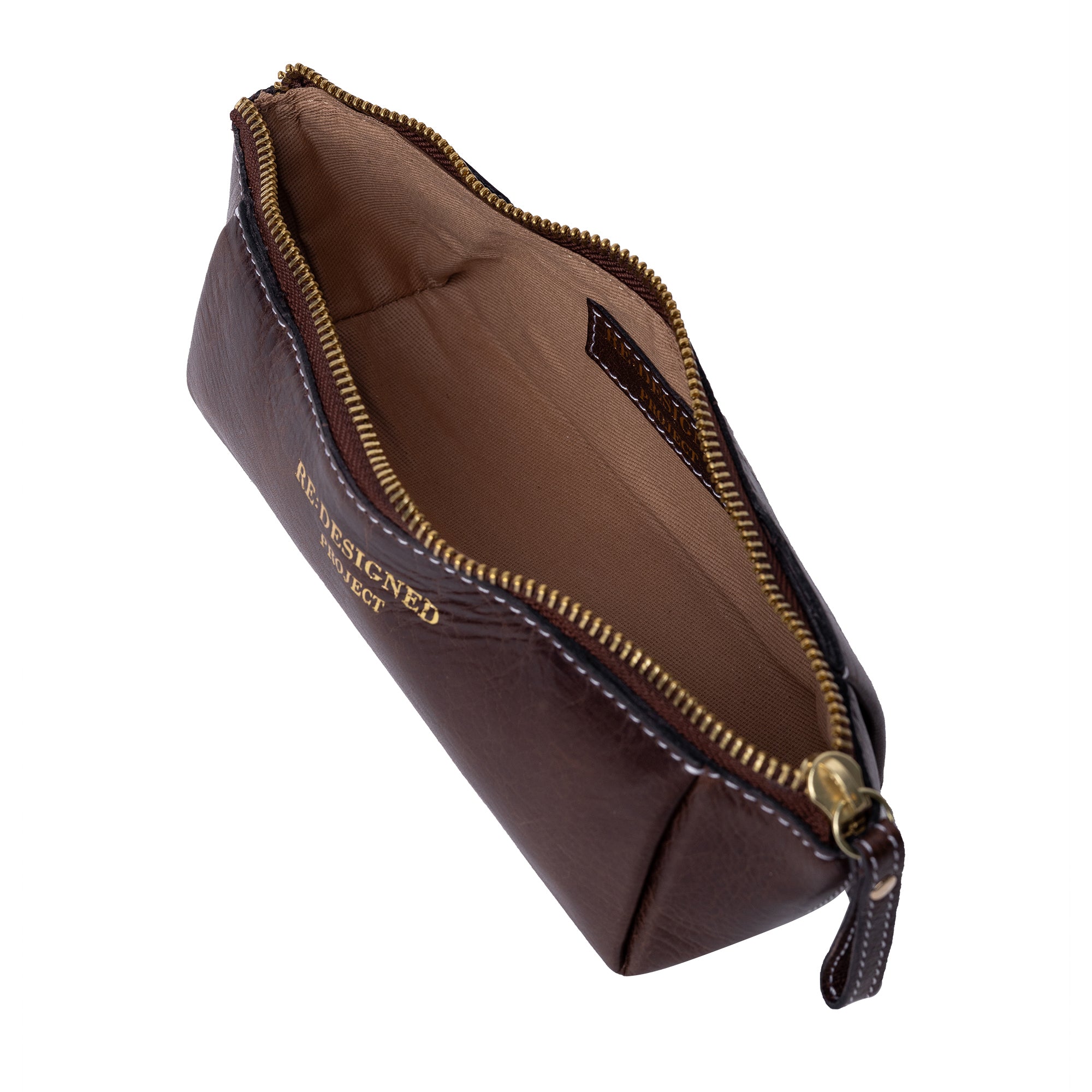 Keep your crafting essentials stylishly organized with the Re:Designed Project 11 bag! This compact, triangular leather case is perfect for short knitting needles (up to 6.7"), crochet hooks, stitch markers, scissors, and other small tools. Crafted from premium Urban leather, it showcases the natural grain of milled cowhide, finished with a light wax for a buttery-soft feel. Complete with a sleek golden YKK zipper, this little case is both practical and effortlessly chic—perfect for makers on the go!